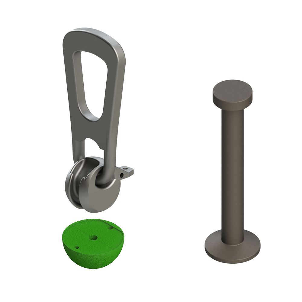 De kunststof uitsparingsbol wordt gebruikt om de ankers van het KK-systeem (KK en KP ankers) te bevestigen aan de bekisting en dient altijd gebruikt te worden om de correcte uitsparing te creëren om veilig te kunnen hijsen met de EAS hijsklauw. De uitsparing van de halve bol en de vorm van de kogel van de hijsklauw zijn op elkaar afgestemd om een veilige lastoverdracht te garanderen.